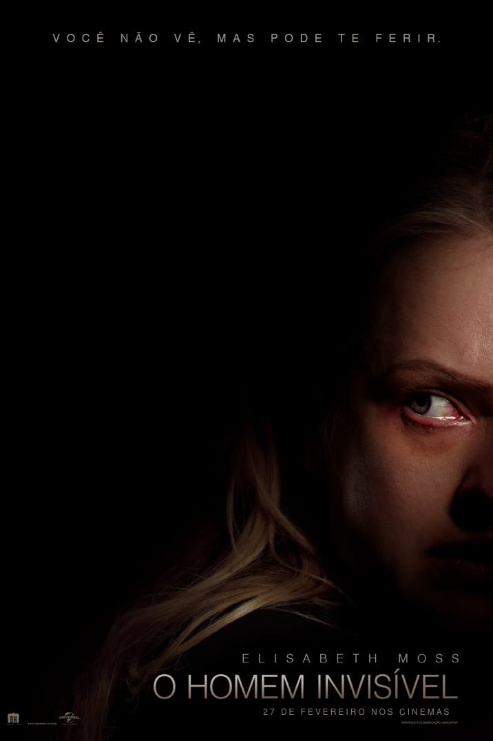 - Sinopse: O que você não pode ver, pode te machucar. A vencedora do Emmy, Elisabeth Moss (Nós, Handmaid’s Tale⁄Hulu) estrea um conto aterrorizante e moderno sobre obsessão, inspirado no clássico personagem do universo de monstros da Universal. Presa a um relacionamento violento e controlador com um rico e brilhante cientista, Cecília Kass (Moss) escapa na calada da noite e desaparece, para se esconder, com a ajuda de sua irmã (Harriet Dyer, The InBetween⁄NBC), de sua amiga de infância (Aldis Hodge, Stranight Outta Compton) e de sua filha adolescente (Storm Reid, Euphoria⁄HBO). Mas quando o ex abusivo de Cecília (Oliver Jackson-Cohen, A Maldição da Residência Hill⁄Netflix) comete suicídio e deixa para ela uma porção generosa de sua vasta fortuna, Cecília suspeita que sua morte tenha sido uma farsa. À medida que uma série de coincidências sinistras se torna letal, ameaçando a vida de quem ela ama, a sanidade de Cecília começa a se desfazer quando ela tenta desesperadamente provar que está sendo caçada por alguém que ninguém pode ver.;