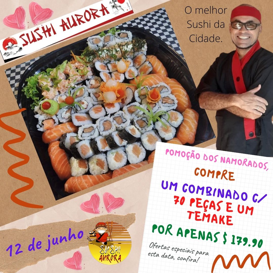 Descrição: Compre um Combinado de 70 Peças e Ganhe, grátis, um Temaki de Salmão com Creme Cheese, por apenas R$ 179,90.